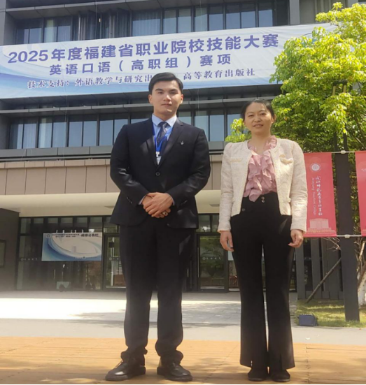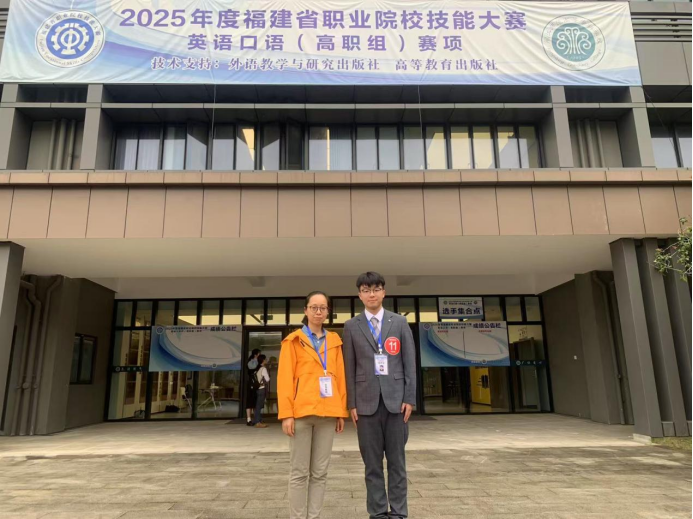 4月12日—13日,在2025年福建省职业院校技能大赛(高职组)英语口语赛项中,我校通识教育学院英语教研室叶雅观老师指导的服设221班翁子昂同学斩获英非专业组一等奖。同时,庄帆老师指导的商英232班张英来同学也荣获专业组三等奖的佳绩。